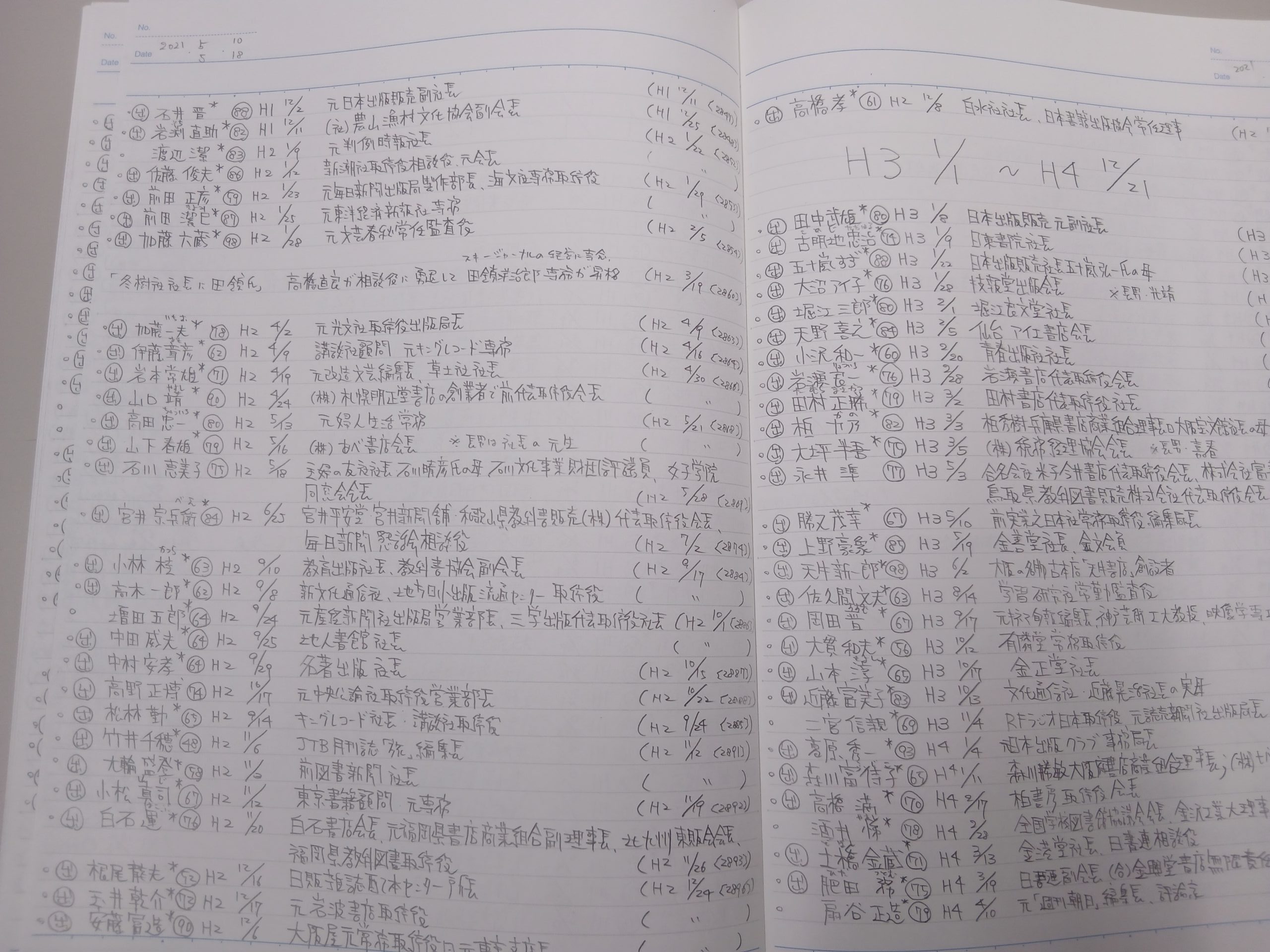 【図3】左ページ1990年(平成2年)の訃報は28件もある。